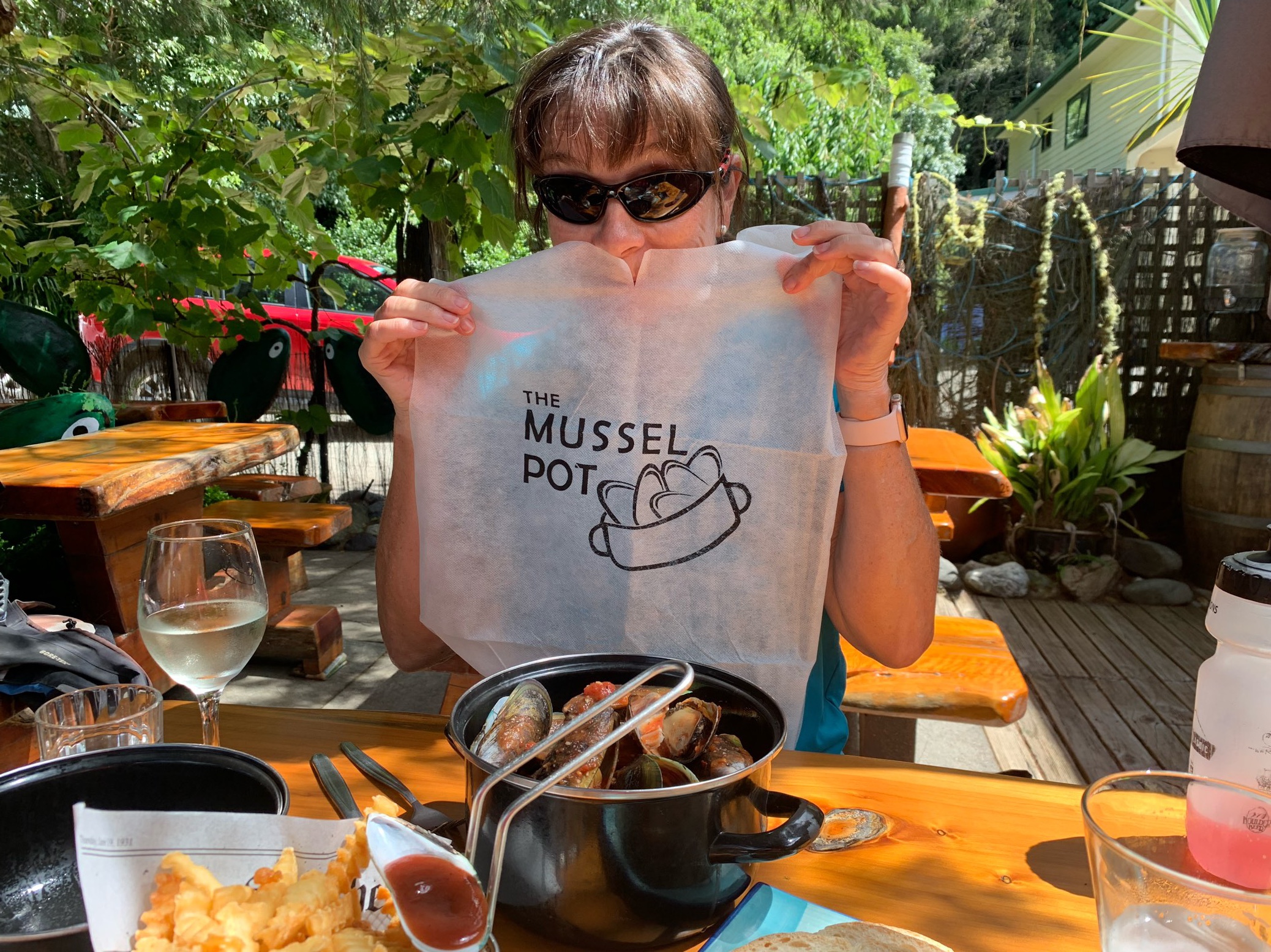 It was a perfect day. We stopped in Havelock for lunch, self-proclaimed as World Famous for its Green Shelled Mussels. Chris loves mussels and we had time! We ate and drank leisurely and fully enjoyed our meal and the lovely setting on the outside patio. Today was not too long at 34 miles and 1,775 feet of climbing. The winds were light and mostly behind us.