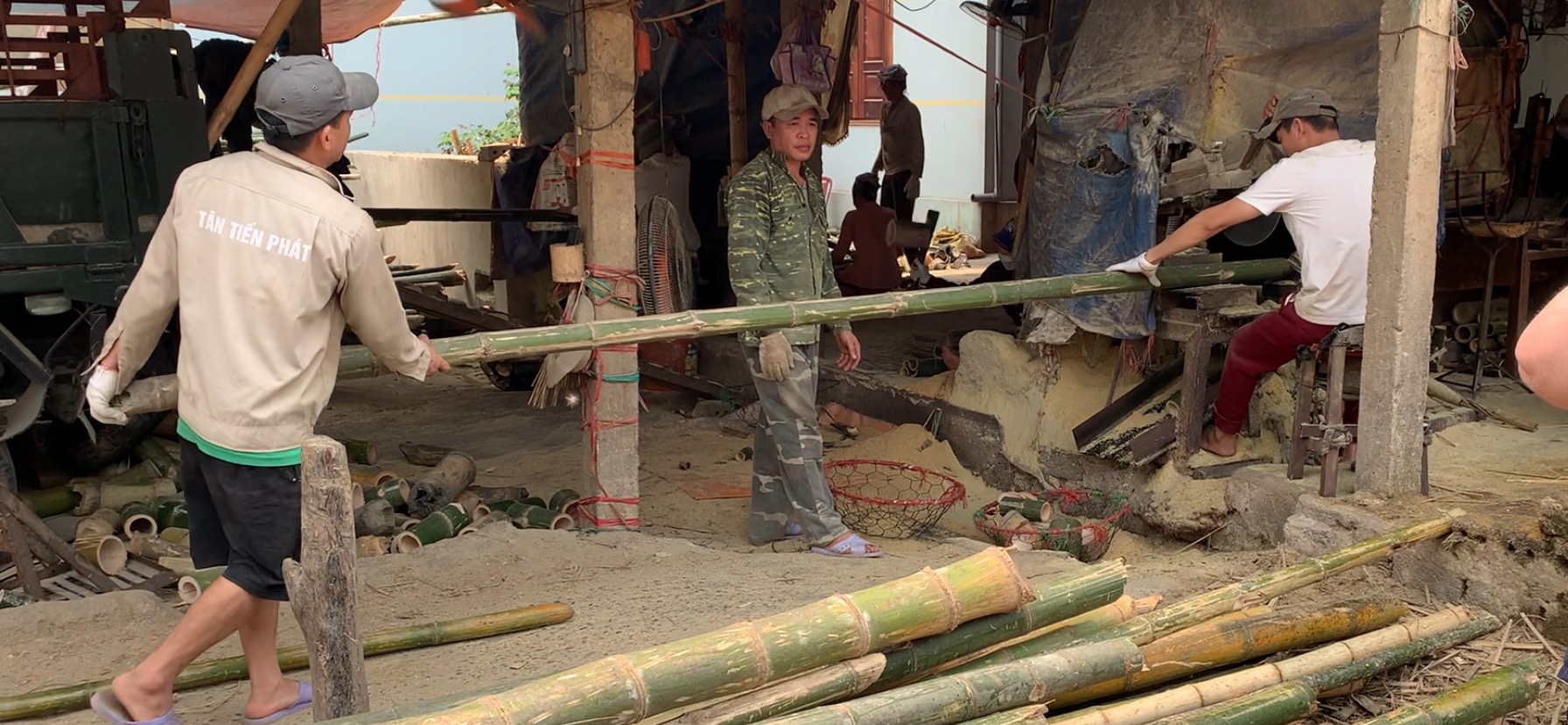 I found the factory, looking for piles of bamboo on the side of the road and then followed a couple with a Vietnamese guide into the parking lot to watch a little. It’s all open air. There’s no tour per se…but no one stops you from looking and everyone was super friendly as usual. There’s some sort of machine that we didn’t see that splits out the actual chopsticks and you can see a video in the link above.